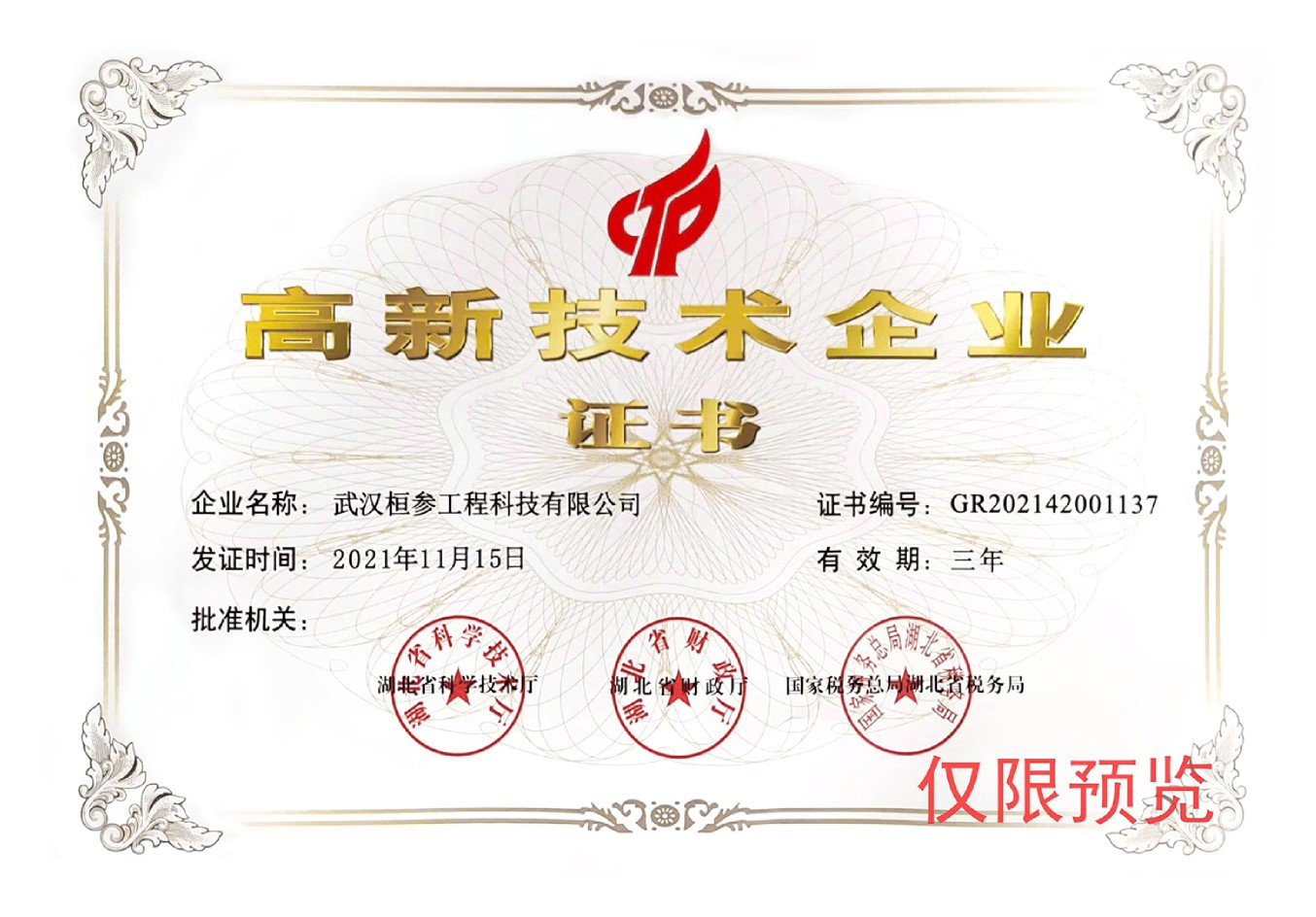 高新企业证书
