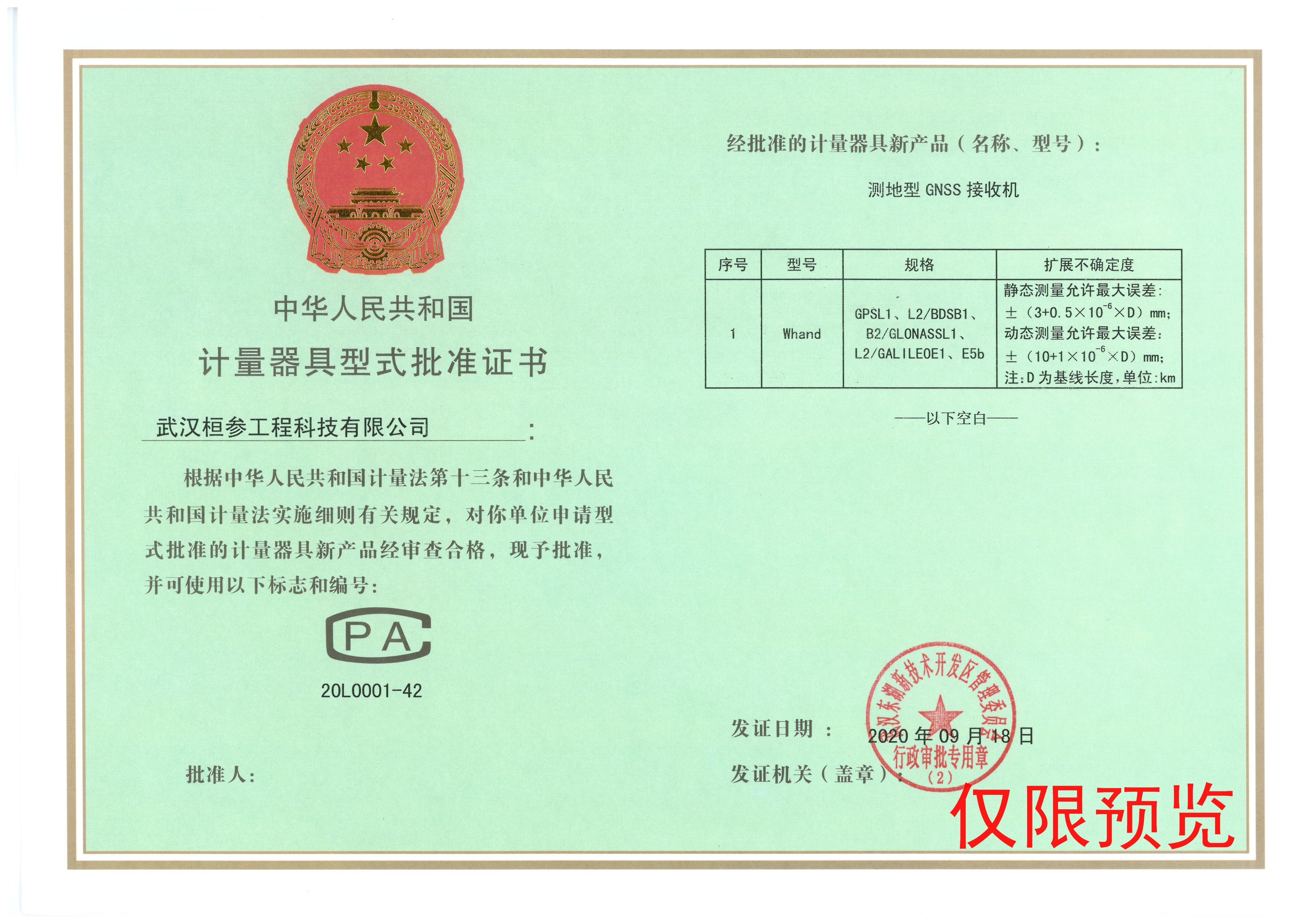 计量器具型式批准证书